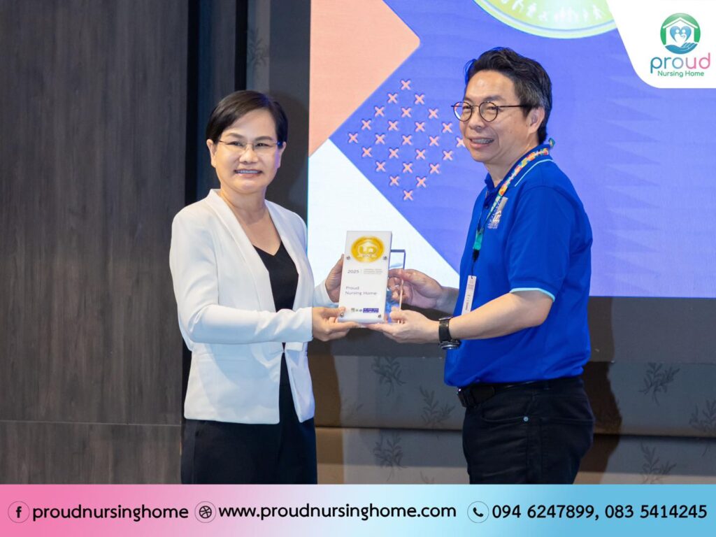 เข้าร่วมรับมอบรางวัล Universal Design Standard 2025 ในระดับ Gold Reward ได้เข้าร่วมรับมอบรางวัล Universal Design Standard2025 ในระดับ Gold Reward ขอแสดงความยินดีกับ พราวด์ เนิสร์สซิ่ง โฮม ปากเกร็ด ที่ได้เข้าร่วมรับมอบรางวัล #UniversaldesignStandard 2025 ในระดับ Gold Reward ในกิจกรรมมอบมาตรฐาน ภายในงาน Universal Design จากทฤษฎีสู่ Best Practice ณ ห้อง Sapphire 205 ชั้น 2 อิมแพคฟอรั่ม เมืองทองธานี ในวันที่ 18 มิถุนายน 2568 เวลา 13.30–17.00 น. โดย Nursing home ในประเทศไทยมีประมาณ 800 เข้าโครงการประมาณ 100 + แห่ง รางวัลระดับ platinum 6 แห่ง รางวัลระดับ gold 5 แห่ง รางวัลระดับ silver 17 แห่ง เมื่อวันที่ 18 มิถุนายน 2568 ศูนย์ออกแบบสภาพแวดล้อมเพื่อทุกคน ทั้ง 8 แห่ง ซึ่งได้รับทุนสนับสนุนจาก สำนักงานกองทุนสนับสนุนการสร้างเสริมสุขภาพ (สสส.) ร่วมกันจัดเสวนา หัวข้อ “Universal Desian จากทฤษภีส์ Best Practice” ในงาน Voice of the Voiceless ครั้งข์ 3 ณ Impact Forum เมืองทองธานี ภายในงานได้รับเกียรติจากนพ.ดร.พรเทพ ศิริวนารังสรรค์ เป็นประธานในการเปิดงานรวมทั้งวิทยากรผู้เชี่ยวชาญด้านสถานดูแลผู้สูงอายุระยะยาว การปรับบ้านผู้สูงอายุ คนพิการ ช่างชุมชนและการจัดสภาพแวดล้อมสำหรับเด็กพิเศษ นอกจากนี้ยังได้รับการตอบรับการเข้าร่วมงานจากภาคีเครือข่าย กว่า 200 คนในงานนี้ยังมีกิจกรรมมอบมาตรฐานอาคารที่เป็นมิตรกับผู้สูงอายุ ประจำปี 2568 ซึ่งมีสถานประกอบการสถานดูแลผู้สูงอายุระยะยาวได้รับรางวัลรวม 28 แห่ง และมีภาคีเครือข่ายภาคเอกชน ร่วมจัดบูธนิทรรศการอุปกรณ์สำหรับผู้สูงอายุ คนพิการ ได้แก่ สุขภันฑ์ ราวจับ สัญญาณฉุกเฉิน เฟอร์นิเจอร์ พื้นผิวต่างสัมผัสเครื่องช่วยการเคลื่อนไหวของผู้สูงอายุและคนพิการ เครื่องออกกำลังกายสำหรับผู้สูงอายุ ฯลฯ
